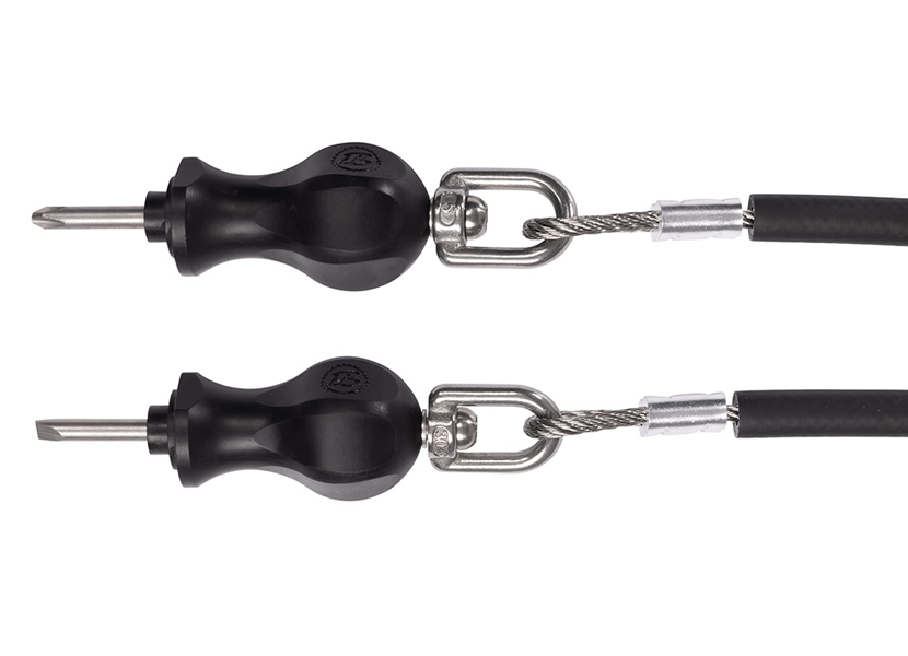 Les tournevis traditionnels utilisés dans les stations publiques posent souvent des problèmes aux utilisateurs – leurs câbles de sécurité se tordent, s’emmêlent ou limitent la liberté de mouvement, même lorsqu’un pivot double face est utilisé sur une boucle ronde. IBOMBO a développé une technologie qui élimine complètement ce problème. Le pivot intégré unilatéral permet au tournevis de tourner complètement et en douceur, tandis que le câble reste en position fixe. Ainsi, l’outil fonctionne de manière légère et intuitive, rendant le travail à la station de réparation plus confortable et précis.