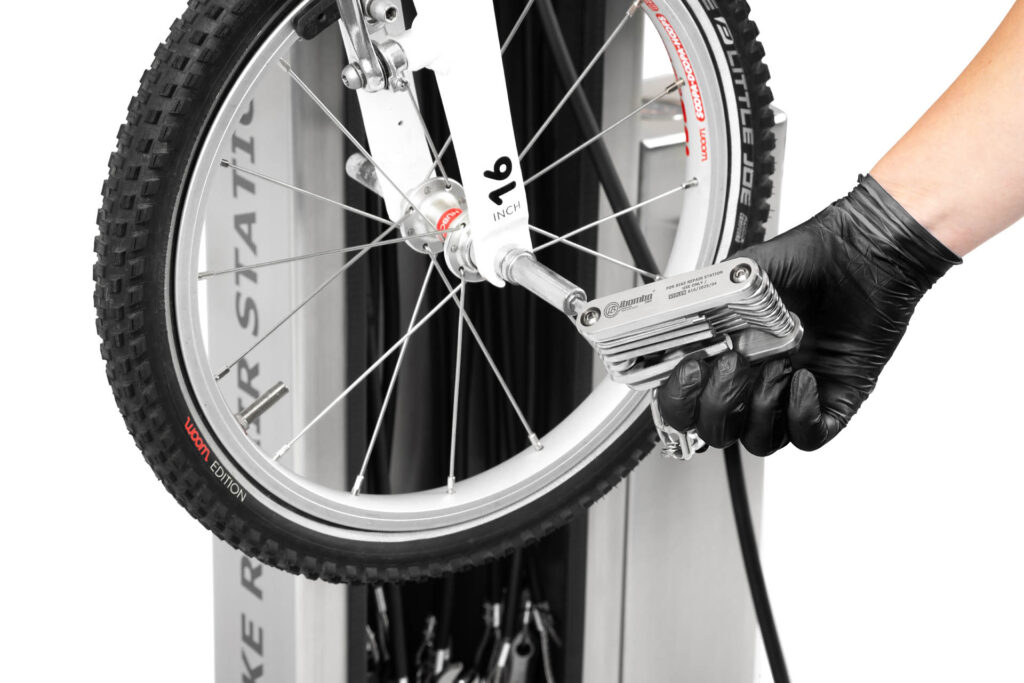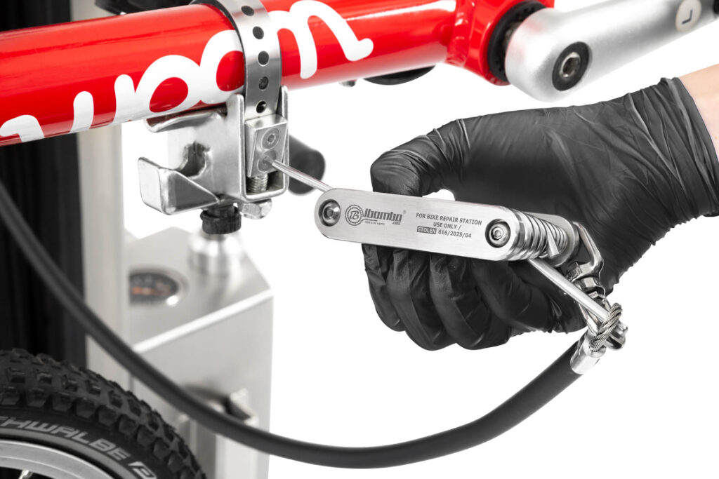 Le nouveau multitool 2-en-1 permet d’effectuer les réglages plus rapidement, réduit le nombre d’outils nécessaires et établit une nouvelle norme de fonctionnalité pour les stations de réparation de vélos publiques IBOMBO.