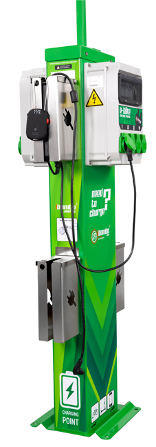 Le module de chargement E-BIKE est logé dans un boîtier compact en PC/ABS haute résistance, doté d’une protection RCBO (6A) derrière une fenêtre résistante aux chocs. Toutes les parties externes sont en acier inoxydable. Les prises (250V) sont en polyamide (PA6) avec des contacts nickelés (IP54).